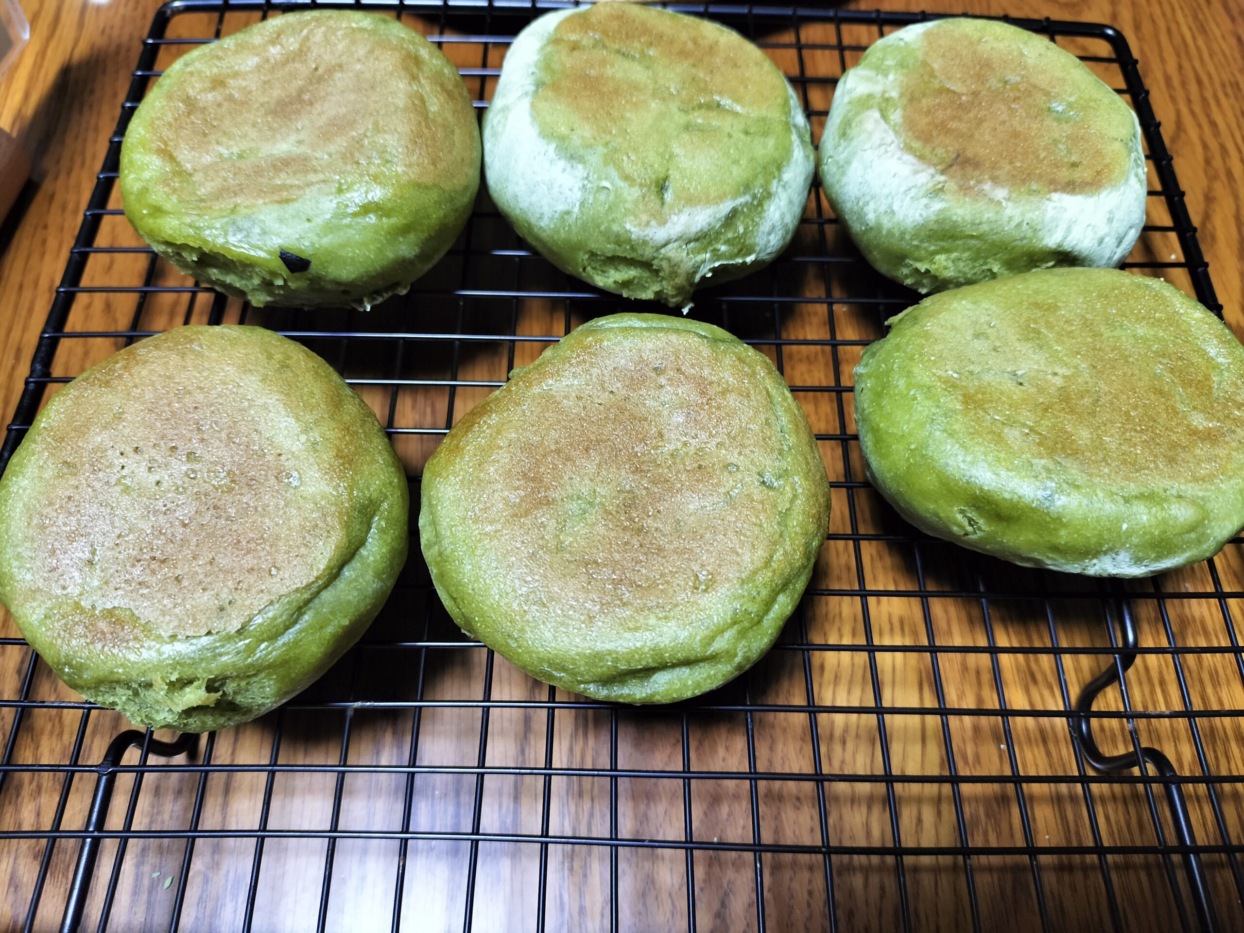 抹茶パン、中にはクリームチーズを黒豆が入っており